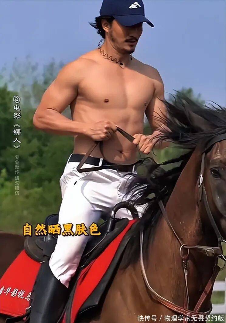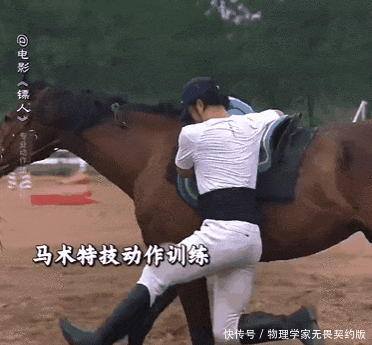 在花絮中,能看到他整个人都挂在马上,随着马的移动轨迹侧边跑。